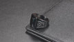 - Anel Masculino feito em aço Titânio e Pedra Ônix na cor Preto;